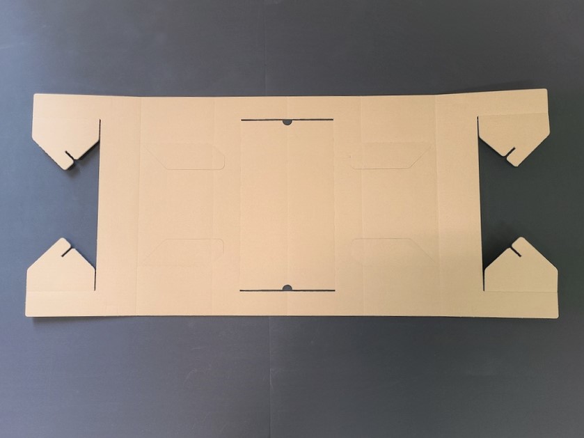 ダンボール一枚から作れるコーナーパッド緩衝材を設計しました。